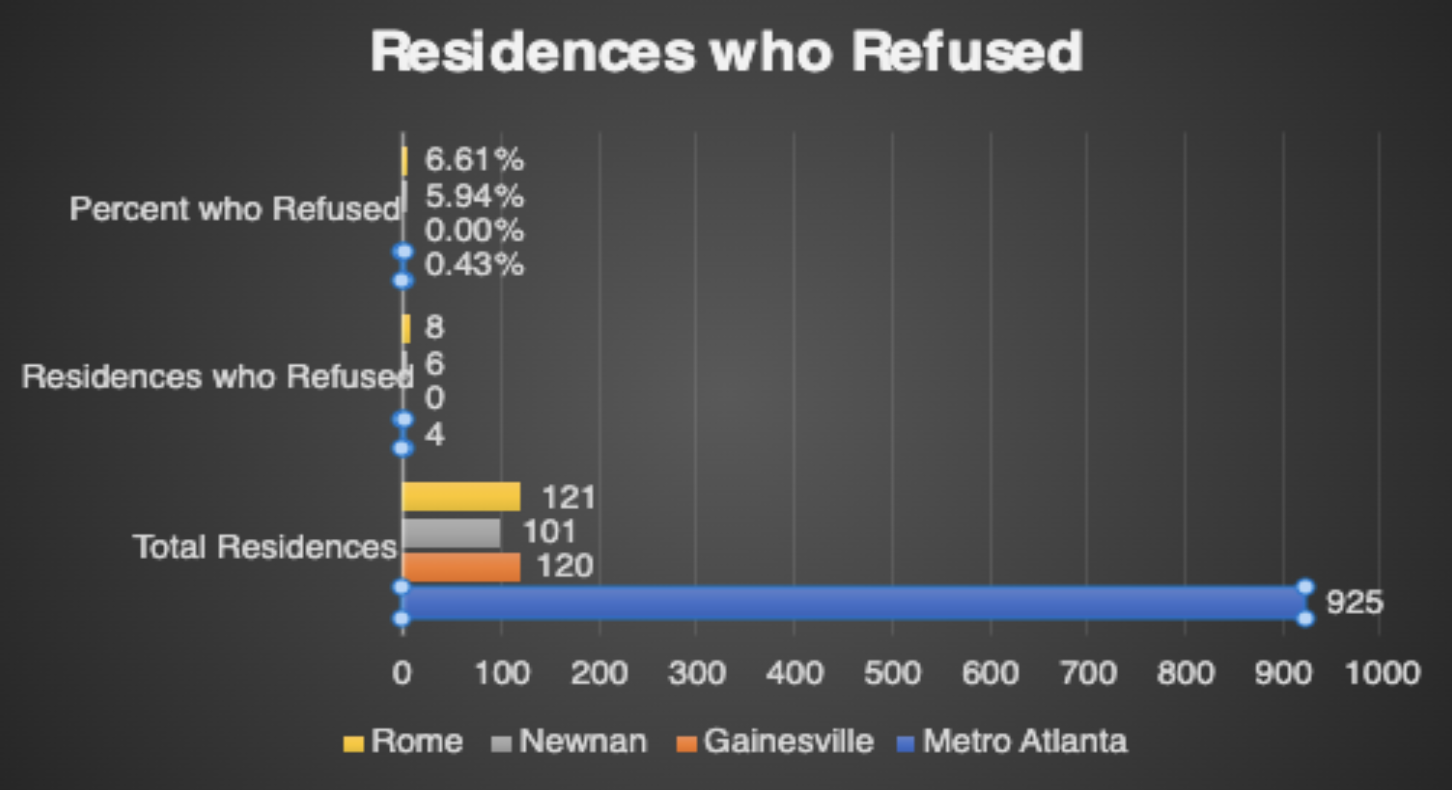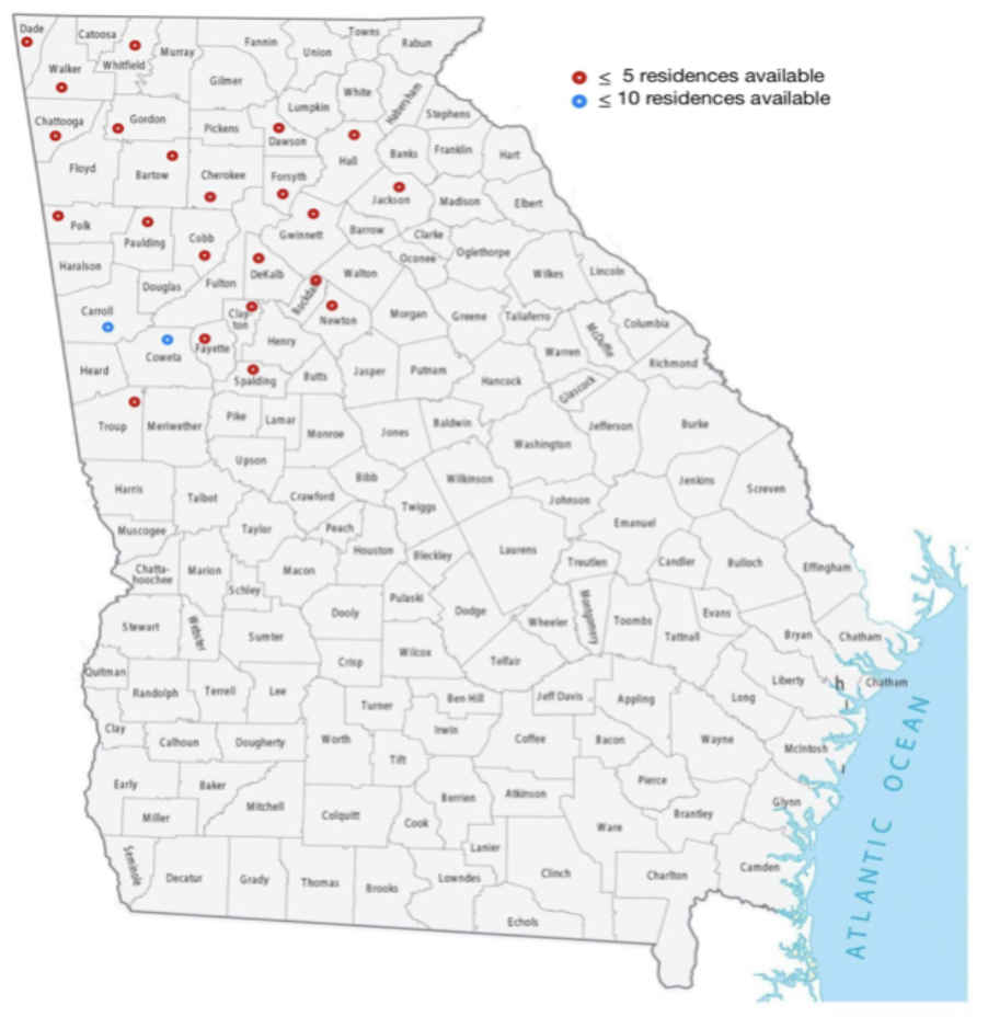 Regional disparities were evident, with Metro Atlanta offering the highest number of options and rural areas like Newnan and Rome displaying more reluctance to accommodate returning citizens.